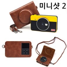 코닥 미니샷 레트로 2세대 가죽 파우치 케이스 + 스트랩 세트 브라운, 1세트