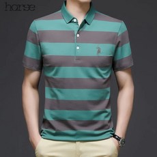 루센 남성용 줄지 배색 골프 카라 셔츠 BLU20A411