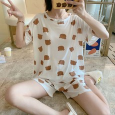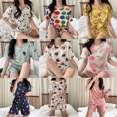 여성 잠옷 세트 여름용 파자마 반팔 반바지 홈웨어룩