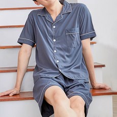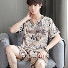 빅사이즈 L-7XL 남자 여름 반팔 잠옷 세트 실크잠옷 남성잠옷