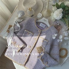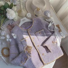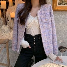 트위드자켓 여성 노카라 숏 자켓 하객룩 라벤더