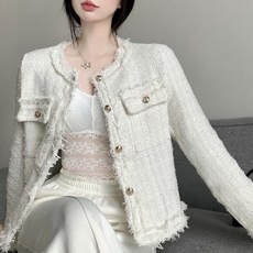 여성용 여성자켓 숏자켓 라운드넥 트위드자켓 긴팔 봄가을-D8G2