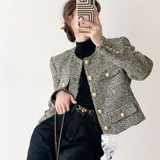 레이디 매직(lady magic) 여성 고급 노카라 트위드 빈티지 숏 자켓