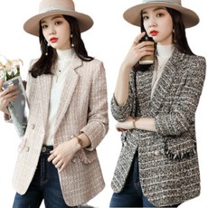 셀럽당 코트 여 춘추 트위드 정장 체크 캐주얼 정장