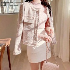 핑크 트위드 자켓 여성 봄 슬림 숏 스타일 파티 코트 가디건