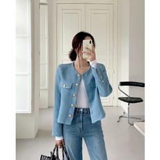 빌리즈빈 봄 여성 라운드넥 기본 트위드 자켓 7857