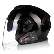 킥커머스 오픈페이스 블루투스 오토바이헬멧 반모 스쿠터헬맷, 유광블랙