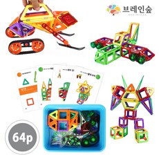 [브레인숲]프리미엄 자석 블럭64 창의력UP 두뇌발달 블럭놀이 홈스쿨 유치원 어린이집 교구 장난감, 단품